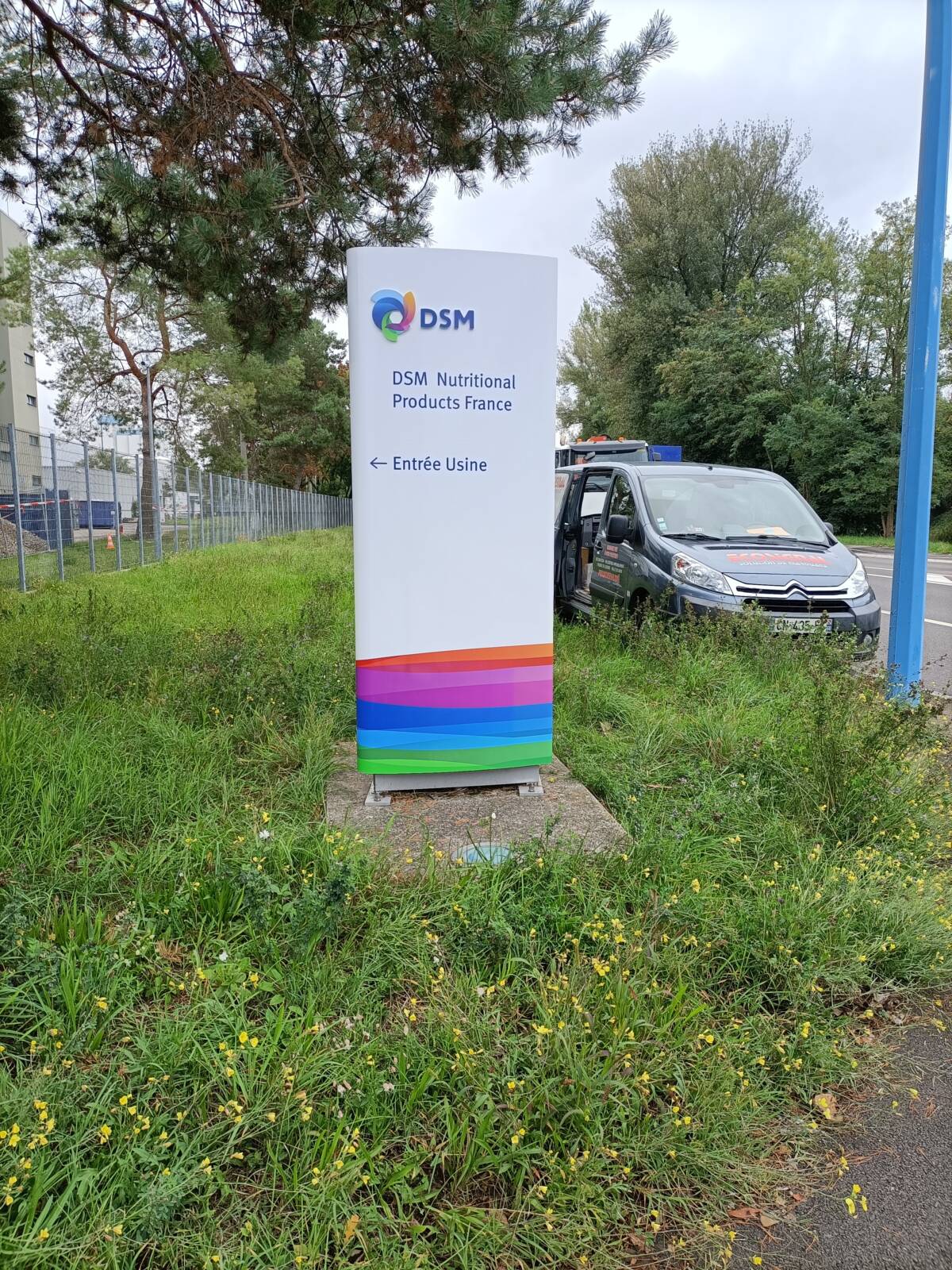 Nous avez-vous vus ? Nous avons réalisé ce mois-ci la pose de signalétiques pour l’entreprise DSM Nutritional Products France, située à Village-Neuf. Depuis 1972, DSM joue un rôle majeur sur le marché nutritionnel, humain et animal.